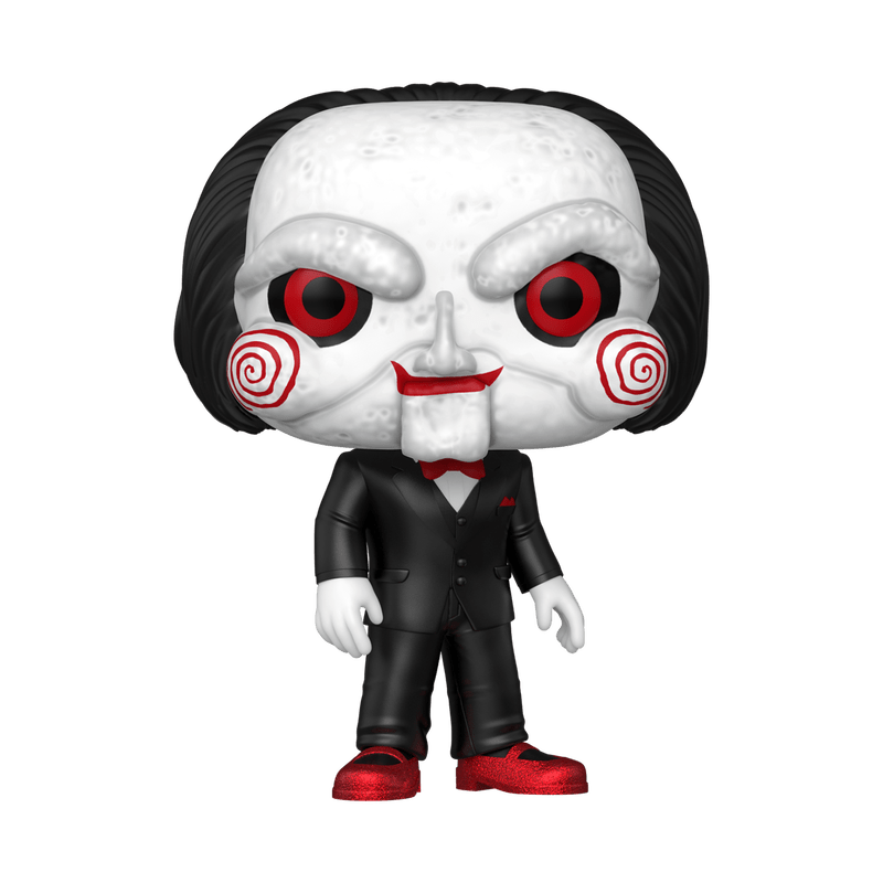Hello, Zepp! Play a little game? Bring home the horrifying messenger of Jigsaw, Billy The Puppet, with this Glitter Shoes Special Edition Funko Pop! #1823 from the Saw horror franchise! This unique figure features the menacing puppet in his signature tuxedo, but with a special glitter finish on his shoes, adding a bizarre, sparkling twist to the iconic horror villain. An essential, unique, and terrifying addition for any horror fan!